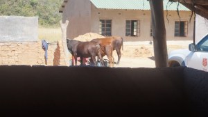 There’s a problem with cows wandering through the school and drinking the water intended for construction that has been hauled up the hill from the bore in buckets by willing parents. Maodzwa May 2014
